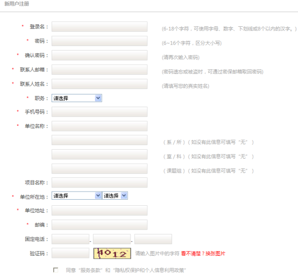 2.進(jìn)入注冊頁面,根據(jù)要求認(rèn)真填寫注冊信息,帶紅色標(biāo)記的為必填項,并同意注冊條款,就可生成新用戶。