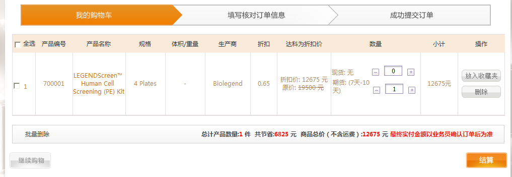 在產(chǎn)品目錄中點擊“放入購物車”,可以將產(chǎn)品放入購車車中。