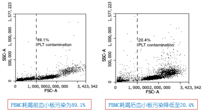 例3:pluriSpin? Human PLTDepletion(Cat#19-00002-31),耗竭之后血小板污染降低至20.4%: