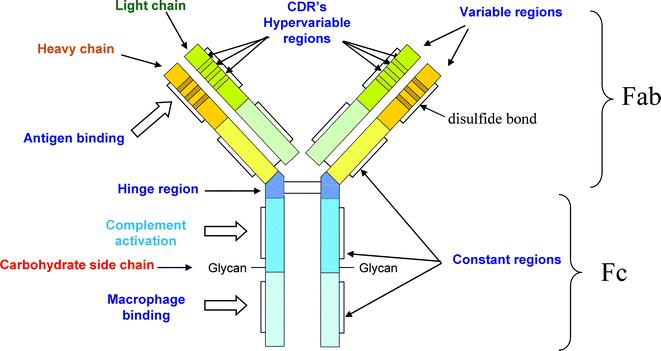 F(ab’)2片段:該種抗體是由兩個靠二硫鍵連接的用于結合抗原的Fab片段組成,這些抗體用在特定的情況中,如需要避免抗體與具有Fc受體的細胞結合的情況。